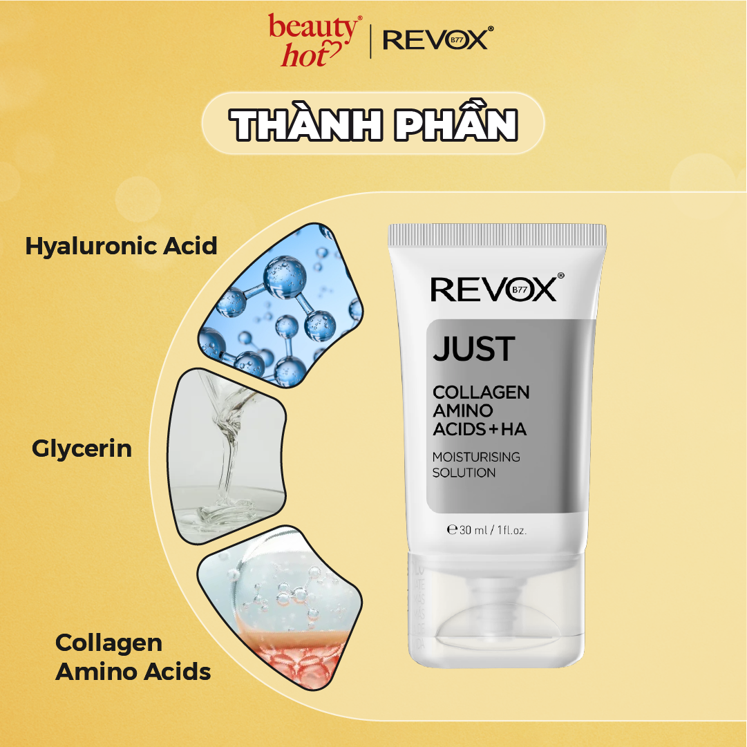 Gel dưỡng ẩm cho da mặt và cổ Revox B77 Just - Collagen Amino Acids + HA - 30ml
